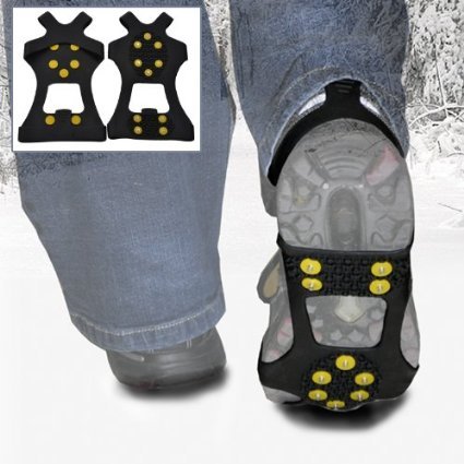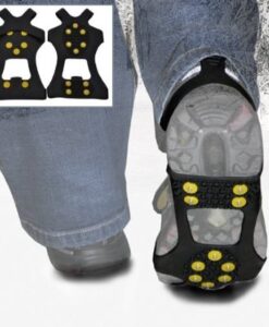 Hiermit fallen Sie nie wieder auf Eis hin. Sie sind sehr einfach zu verwenden, klein und leicht und Sie können sie überall mithinnehmen. Sie können sie einfach über Ihrem Schuh anbringen und bieten Ihnen auf glatten Oberflächen, wie zum Beispiel Schnee und Eis, Halt.