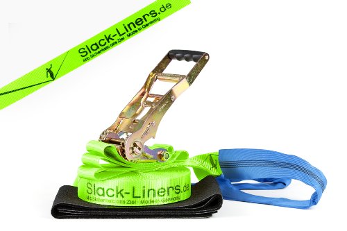 Sie suchen eine neue sportliche Herausforderung? Dann sind Sie bei uns genau richtig! Als Fachhändler und Hersteller von Zurrgurten & Ladungssicherungssystemen bieten wir Ihnen hiermit ein Neu-entwickeltes, optimal aufeinander abgestimmtes Slackline-Komplettset an! Das 4-Teilige Slackline-Set GRÜN in höchster Qualität! 50 mm breit und 15 Meter lang bestehend aus: Ø 1 Line: 4-Tonnen Bruchlast, mit einer verstärkten Schlaufe mit Scheuerschutz, 13 Meter, Farbe Neon-/Leuchtgrün Ø 1 Langhebel-Ratsche: mit 2 Meter Line und verstärkter Schlaufe (Bandstück + Ratsche). Ø 2 Scheuerschutz für die Bäume bestehend aus 2 Matten-NFG geschlitzt + gummiert Gefertigt ähnlich DIN 79400 Die beiliegenden Aufbau- und Sicherheitshinweise sind unbedingt einzuhalten! Aus aktueller deutscher Produktion !! MADE IN GERMANY Sämtliche Teile sind in Industriequalität gefertigt, alle Metallteile sind verzinkt. Eine Rechnung mit ausgewiesener Mehrwertsteuer liegt bei.