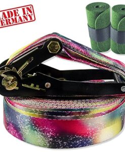 Krachig und bunt – die BUZZARD Splash-Slackline präsentiert sich mit ihrem auffälligen Design als absoluter Trendsetter. Der flippige Mix aus bunten Farbkleksen, eingearbeiteten Ornamenten und Pinseltupfen lässt die Herzen aller Slackline-Fans höher schlagen. 100% unisex, trendig und außergewöhnlich. Mit der innovativen Splash-Line macht das Slacklinen gleich noch viel mehr Spaß. Und auch Tricks lässt diese freakige Line noch spektakulärer aussehen. Die BUZZARD Splash-Slackline wird der Hingucker schlechthin sein, egal wo sie aufgespannt wird.