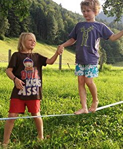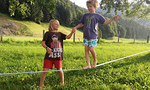 Die Funline X13 mit 15 Metern Länge von Gibbon Slacklines ist erste Wahl für Familien und Kinder. Fröhlich buntes Design für farbenfrohes Slacklinen mit Ihren Jüngsten! Das Bandmaterial ist äußerst geschmeidig und sehr weich, und deshalb für erste Gehversuche (am besten barfuß!) auf der Slackline geeignet. Die besondere Gummierung macht diese Line besonders rutschsicher für Kinder und Einsteiger. Mit ein bisschen Übung kann man auf dieser Slackline auch tolle Slack-Tricks und Jumps vollführen.