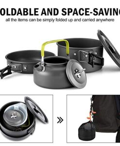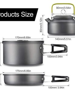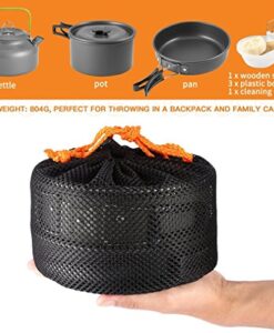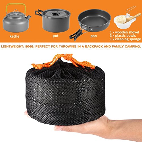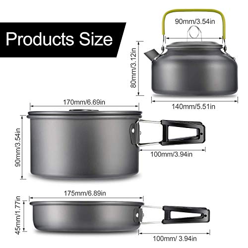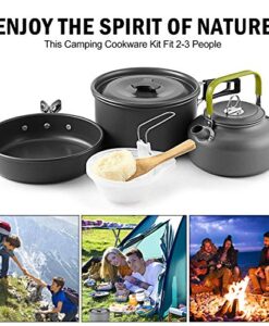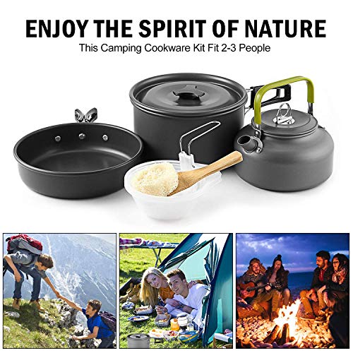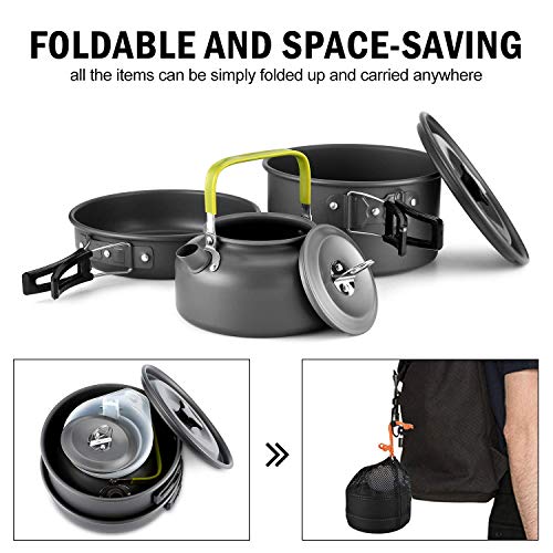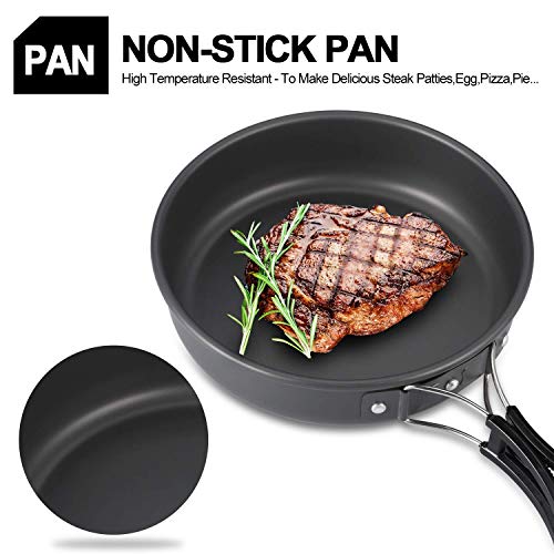 Camping Kochgeschirr Set 2-3 Personen Camping-Kochtopf Set aus Edelstah 11-tlg Kochausrüstung für Outdoor Wandern Picknick | FDA Genehmigte Topf & Pfanne aus Aluminium und Edelstahl | faltbare