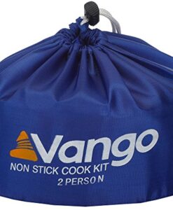 Vango 2 Person Non Stick Cook Kit Description: 2 pots with lids, 1 frying pan and 2 cups. Don’t waste time on your holiday or expedition scrubbing pots and pans. These non-stick cook kits will ensure you are not hovering around the washing up area for long before you can put them back in their handy carry bag. Features: Non stick Coating – Easy to clean Folding Handle – Compact and easy stored Fully nests together – Compact and easy stored 16cm Frying Pan 1400ml Pot 900ml Pot 2 Pot Lids 2 Plastic Cups Storage bag Specifications: