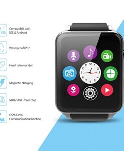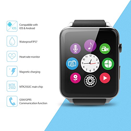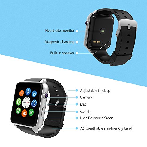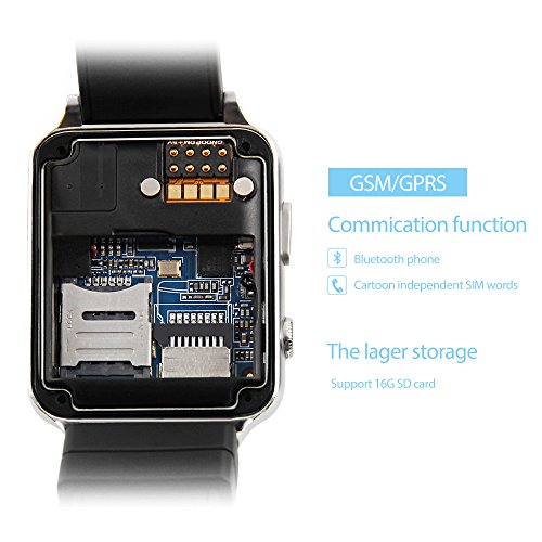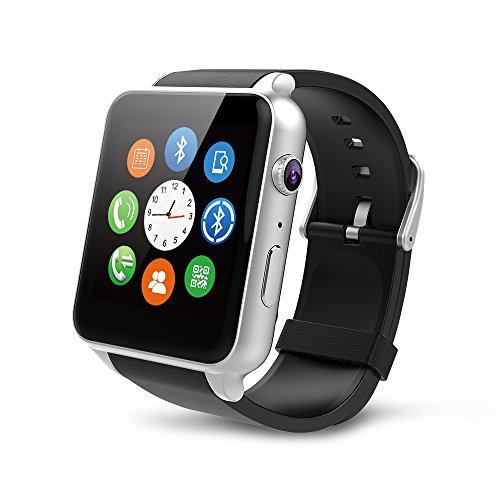 Memteq Bluetooth Smart Watch, Smartwatch, 1,54 Zoll (4 cm), Touchscreen mit Kamera, 1,3 MPS für iPhone, Andorid, Samsung/HTC/LG/Huawei/ZTE, Silber