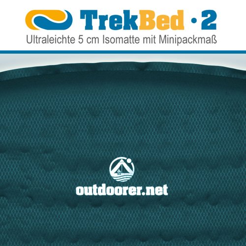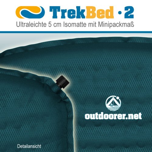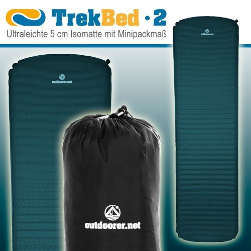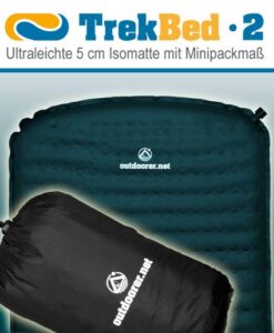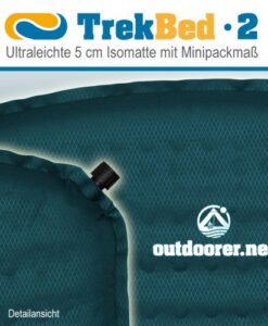 Das Trek Bed 2 ist eine ultraleichte selbstaufblasbare Isomatte und mit seinem Gewicht von nur ca. 799 g speziell auf die Bedürfnisse bei Trekkingtouren zu Land und zu Wasser zugeschnitten. Auch bei längeren Touren finden Sie Schlafkomfort im Trek Bed 2. Auch für Backpacker ist sie die ideale Ergänzung auf Rucksackreisen, denn mit einem Minipackmaß von 28 x 16 x 16 cm nimmt sie nur relativ wenig Platz im Rucksack ein. Jeder Outdoor Fan, der eine selbstaufblasbare Isomatte deutlich unter 1 kg sucht und dennoch den Komfort einer 5 cm Isomatte nicht missen möchte, sollte beim Trek Bed 2 zugreifen.