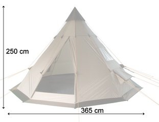 CampFeuer® – Tipi Zelt (Teepee), 365 x 365 x 250 cm, grau, Indianerzelt, Camping Pyramidenzelt
