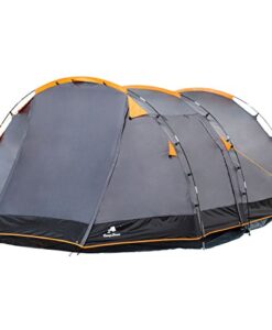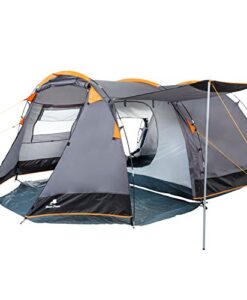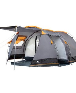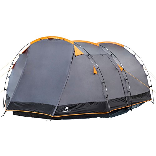 CampFeuer® – Tunnelzelt Familienzelt 3000mm Wassersäule, Grau / Schwarz (Orange), Campingzelt für 4 Personen