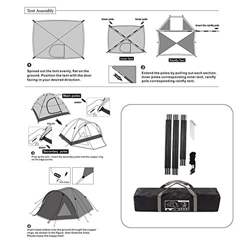 Semoo Leichtgewicht Campingzelt 4 Personen, für 4 Jahreszeiten, D-Eingang, mit Moskitonetz, mit Tragetasche
