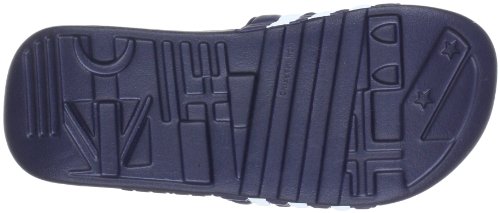Santiossage Die Badesschlappen sind neu, originalverpackt inkl. aller Schilder. Zwischensohle: TPR Fußbett mit den allzeit beliebten Massagenoppen. Außensohle: Eingespritztes, federleichtes EVA. Innenfutter: Schnelltrocknende Bandage. Material: Synthesefaser. Farbe: new navy/clear/white.