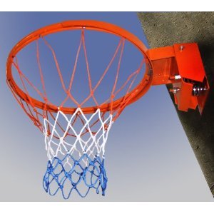 Basketballkorb mit abknickbarem Korb und versenkter Netzanbringung. Zwei Stahlfedern und die versenkte Netzanbringung sorgen für lange Haltbarkeit und weniger Verletzungsgefahr.Inkl. Netz, ohne Zielbrett, ohne Befestigungsschrauben für die Rückwand. In einer anderen Auktion können Sie auch ein schweres, feuerverzinkte Metallketten-Netz für diesen Korb erwerben.