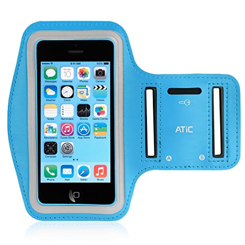 MoKo iPhone 5S Sportarmband – Sweatproof Joggen Laufen Sport Armband Handy Hülle Schutzhülle Case + Schlüsselhalter Kopfhörer Anschluss für Apple iPhone 5/5S/5C/5SE Smartphone