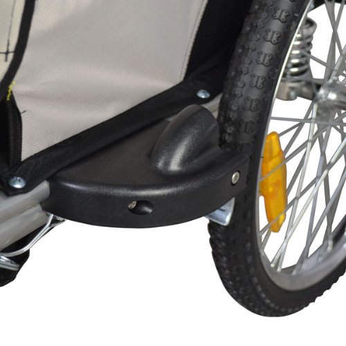 Artikelbeschreibung: Für 1 oder 2 Kinder geeignet –360° drehbares Jogger-Rad –DEICHSEL/ANHÄNGESTANGE wird bei Jogger Funktion nach unter geklappt –Starker Stahlrohrrahmen und wasserdichte Polyester Abdeckung (600D) –spezieller Radschutz –Neue Feststellbremse, Sie können Ihren Jogging-Kinderwagen abstellen ohne das er davon rollt –Komplettes Federungssystem des Fahrradkinderanhängers macht diesen viel bequemer für Ihre Kinder –Neue Feststellbremse, Sie können Ihren Jogging-Kinderwagen abstellen ohne das er davon rollt –Einfacher Umbau von Fahrradanhänger zu einem Jogger –5-Punkt Sicherheitsgurt und gepolsterter Sitz für zusätzliche Sicherheit und Komfort –Fenster und Wetterschutz mit UV-Schutz –Innentaschen für Kinder und grosser Stauraum hinter dem Sitz –Ohne Werkzeug schnell zusammen gebaut –Zusammenklappbar für den Transport und Aufbewahrung –Universal-Kupplung für die Hinterachse inklusive