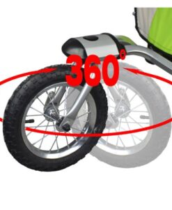Fahrradanhänger bleibt stehen, auch wenn das Fahrrad umkippt –20″ Luftbereifung –Reflektoren sind an allen Seiten angebracht, für zusätzliche Sicherheit bei schlechtem Wetter und in der Dunkelheit –Sicherheitswimpel für verbesserte Sichtbarkeit –Jogger-Kit inklusive (12″ Vorderrad und Schiebegriff) –StVZO zugelassen bei Nachrüstung eines zugelassenen Rücklichtes