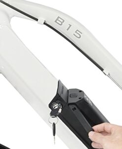 Das Elektro CityRad ist mit einer 7 Gang Shimano RevoShift Schaltung, einem Komfort-Sattel, einer Zoom Alu Federgabel, Scheibenbremsen am Vorder- und Hinterrad, einem verwindungsfreien Aluminium 6061 Rahmen, einem Felgenschloss und einer H10 LED Beleuchtung für vorne und hinten ausgestattet. Durch dieses Komponenten-Ensemble ermöglicht das B15 einen komfortablen und sicheren Betrieb. B15 Citybike – eBike mit Scheibenbremsen Der im Rahmen integrierte Samsung Cell Akku ist mit einem Handgriff aus dem Rahmen herausnehmbar und kann zusätzlich durch die integrierte USB-Schnittstelle als Ladestation für jedes USB-fähige Mobilgerät eingesetzt werden. Zusätzlich besitzt der Akku eine intelligente Ladekontrolle, die durch Knopfdruck jederzeit abgerufen werden kann. Zur Diebstahlsicherung ist d