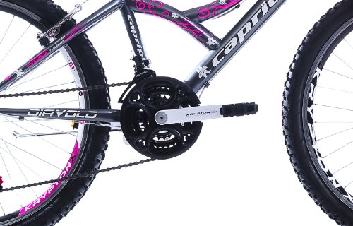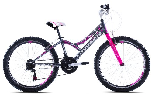Wir bieten Ihnen hier ein Markenmountainbike aus dem Hause Capriolo an. Dieses Kindermountainbike steht den großen in Nichts nach. Das Fahrrad ist für Kinder ab sechs Jahren mit einer Körpergröße von 125-155 cm geeignet. Der Rahmen ist vollkommen alltagstauglich, hält aber auch stärkeren Beanspruchungen spielend stand. Aufgrund der Schaltung links und rechts am Lenker stehen 18-Gänge von Shimano in jeder Situation zur Verfügung. Viele Markenkomponenten in Verbindung mit dem stabilen Rahmen sorgen für eine ausreichende Langlebigkeit. Dieses 24″ Mountainbike für Kinder gehört wohl zu den coolsten sich am Markt befindlichen Fahrrädern dieser Altersklasse.