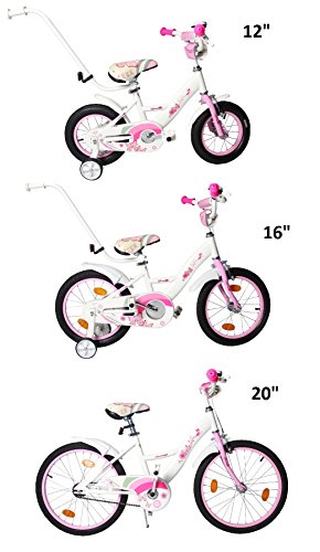 Clamaro ‚Butterfly 2017‘ Kinderfahrrad 12, 16 oder 20 Zoll für Mädchen mit Schiebestange und Stützrädern, inkl. Rücktrittbremse gemäß DIN EN 14765:2005, Mädchenfahrräder für 3, 5 oder 6 Jährige – Farbe: Butterfly Weiß/Rosa