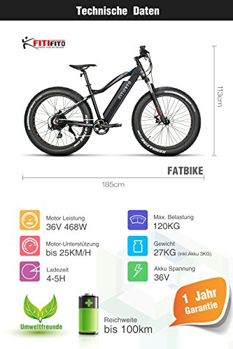 Mit dem robusten 36V250W und langlebigen 36V 13Ah 468W Samsung Cells Lithium-Ionen Akku mit USB Anschluss bringt unser Fatbike Sie schnell und sicher voran – on und offroad in die Natur.