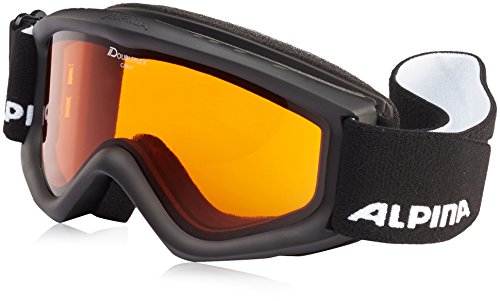 ALPINA CARAT DH. Kinder-Skibrille mit Schutzstufe S2 und Doubleflex Hicon, stellt Kontraste besonders deutlich dar und verhindert das Einfrieren der Scheiben (Thermoblock); breites, verstellbares Textilband mit Logo; kindgerechtes Design.