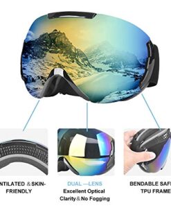 【OTG Design & Helm kompatibel】Mit dem OTG Design passt die Snowbordbrille auch für einen Brillenträger. Verstellbarer Anti-Rutsch-Riemen und eine optimierte Rahmenform sorgt für eine bessere Helmkompatibilität, gut für Motorradfahrer,entworfen für Erwachsene und Jugendliche, Damen und Herren