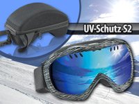 Die Stoßdämpfung und das stabile Gehäuse schützen Sie auch im Falle eines Falles. Die flexible und splitterfeste Kunststoffscheibe bietet optimalen Schutz für Ihre Augen. Selbstverständlich mit UV-Filter. Dabei bietet die neuartige vergrößerte Scheibengeometrie auf der Piste stets den optimalen Überblick: Der Sichtbereich ist seitlich und nach unten deutlich erweitert.