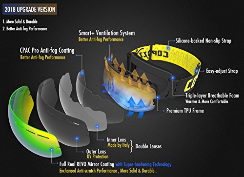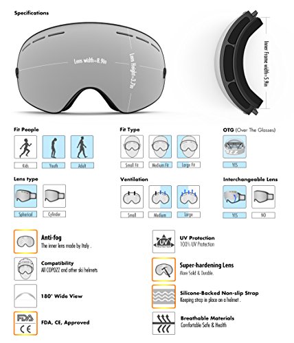 COPOZZ Skibrille G1 Ski Snowboard Brille Brillenträger Schneebrille Snowboardbrille Verspiegelt – Für Damen Herren Frauen Jungen – Mit Sehstärke OTG UV-Schutz Anti-Fog