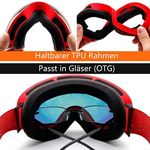 OTBBA Skibrille, Ski Snowboardbrille Brillentr?ger Schneebrille Verspiegelt- Für Skibrillen mit Anti-Nebel UV-Schutz, Winter Schnee Sport, Austauschbar Sph?rische Doppelte Linse für M?nner Frauen