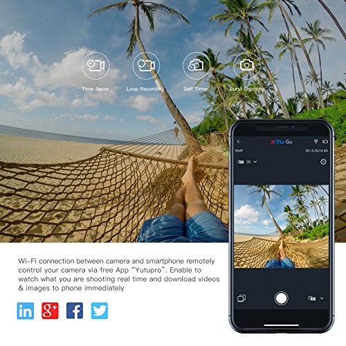 Für den Anschluss an Computern, Fernsehern und Projektoren stehen HDMI-, USB- und AV-Videoausgang zur Verfügung. Dual 1350mAh Lithium-Ionen-Akku, alle 24 Halterungen und Zubehör sind kompatibel mit Go-Pro.