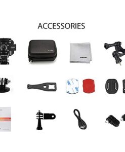 Lieferumfang: 1 x Reinigungstuch, 1 x lange Schraube, 1 x Bedienungsanleitung (evtl. nicht in deutscher Sprache), 1 x Schrauben und Schraubenwerkzeug, 1 x Fernbedienung, 1 x Base-Halterung, 1 x USB-Kabel, 1 x Fahrrad-Lenkerhalter, 1 x Kamera, 2 x 3M Klett-Aufkleber, 1 x Tragetasche.