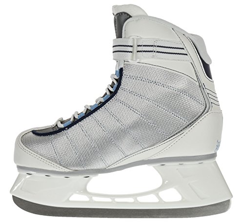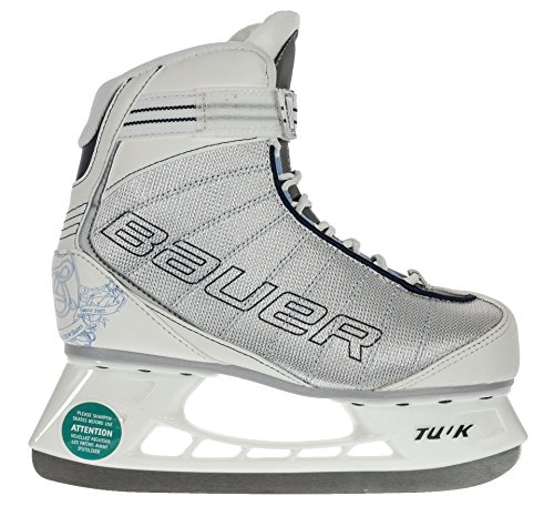Der Bauer Flow Recreational Ice Eishockeyschlittschuh für Damen hat folgende Eigenschaften: Der Bauer Flow Rec Ice Eishockeyschlittschuh für Damen ist ein leichter Schlittschuh aus robustem Textilgewebe. Vorne ist der Schuh mit einer harten Schutzkappe versehen und auch das Fersenband sorgt für eine gute Unterstützung und Stabilität. Durch das weiche Padding rund um den Knöchel und die EVA Innensohle wird ein hoher Tragekomfort beim Schlittschuhlaufen geboten. Unter der TPR Sohle befindet sich ein Tuuk Schlittschuhhalterung mit einer rostfreien Tuuk Super Kufe aus Stahl (ungeschliffen). Dieser Schlittschuh hat eine normale (R; regular) Passform. Eigenschaften: Bauer Eishockeyschlittschuhe für Damen Leichtgewicht Robustes Textilgewebe Schutzkappe vorne Fersenkappe Tuuk Schlittschuhhalterung Tuuk Super Kufe aus RVS (ungeschliffen) Normale Passform (R) Farbe: weiß-grau-schwarz