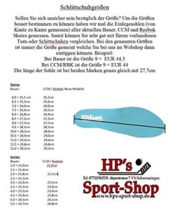 Um die Größe besser bestimmen zu können habe ich mal die Längen der Einlegesohlen (von Kante zu Kante gemessen) der einzelnen Schuhgrößen gemessen. So können Sie dann sehr sehr gut mit dem bisherigen Schlittschuh oder sonstigem Sportschuh vergleichen. Da ergeben sich folgende Längen: